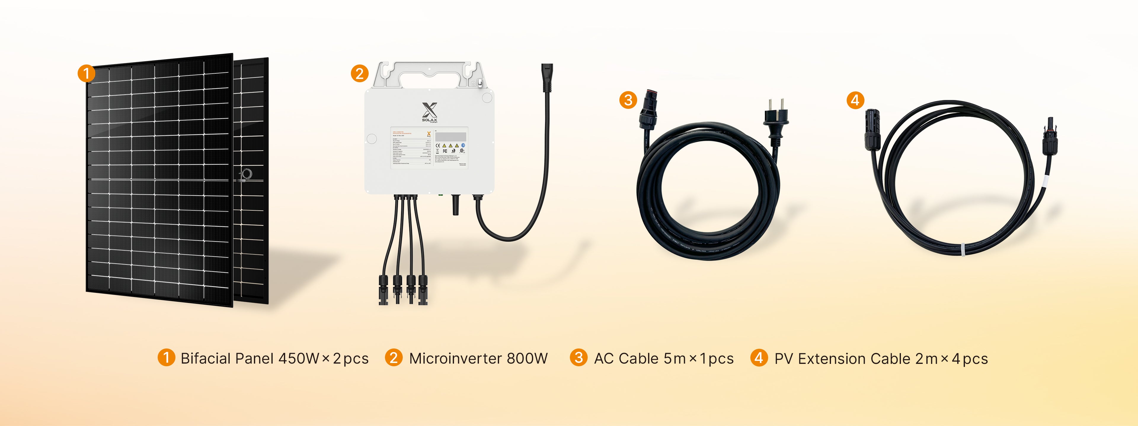 A balcony solar system consists of 2/4 PV panels paired with a microinverter, directly mounted on the outside of your balcony railing. Simply plug the AC connector into a household socket to start generating electricity. This plug-and-play, ultra-compact distributed PV solution requires no professional installation or grid-connection approval.