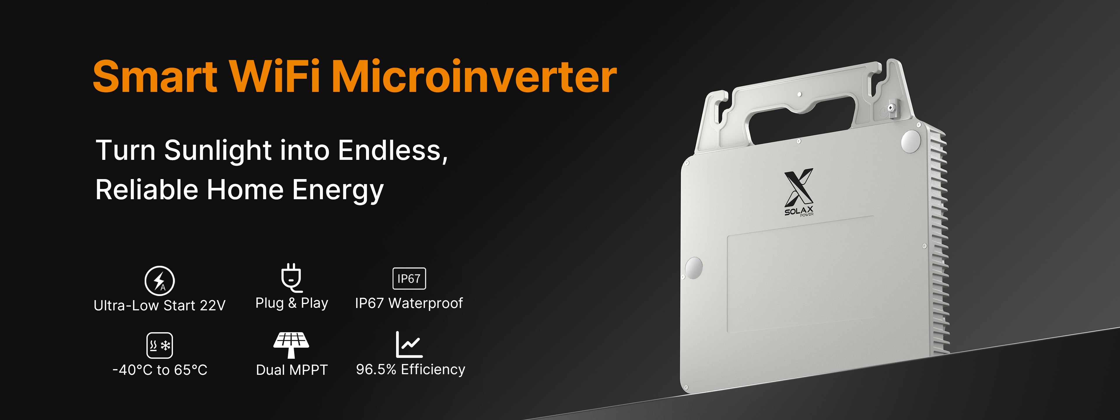 Solax microinverter delivers 96.5% efficiency with 20A DC input and independent MPPT per panel. Real-time app monitoring, remote shutdown, and IP67 protection ensure safe, stable performance. Quick plug-and-play setup and easy expansion bring reliable, sustainable solar power to your home.